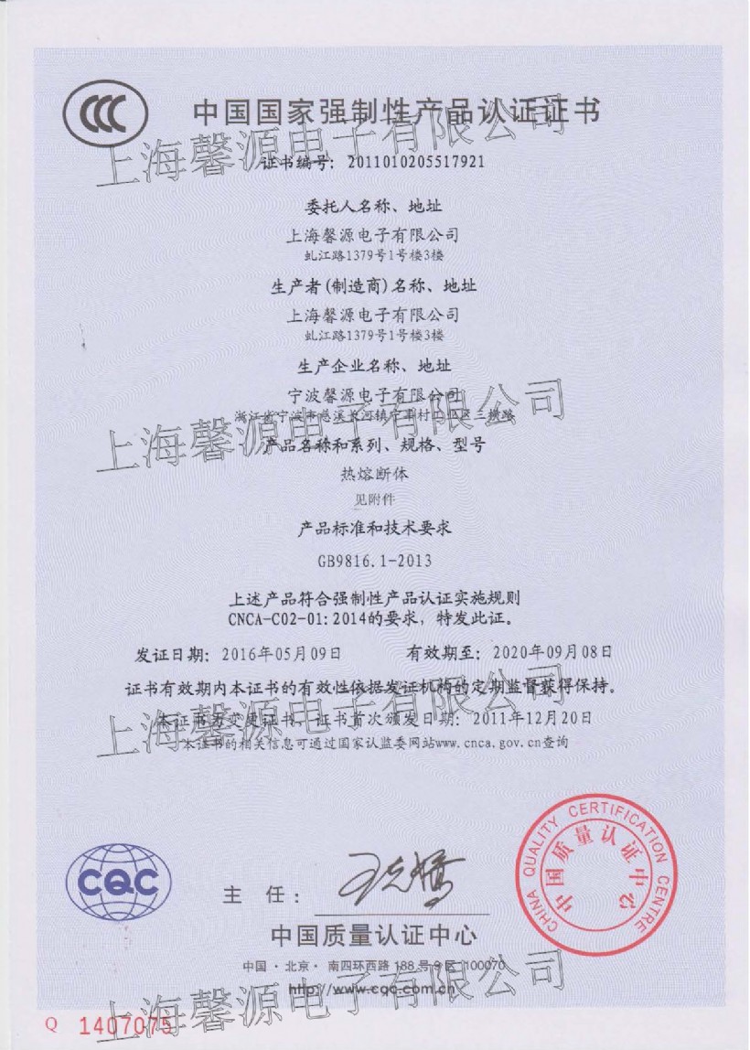 馨源电子有限公司前身为上海无线电一厂,创建于1980年,注册资金1800万元,占地面积2000余平方米,是一家专业从事温度保险丝(热熔断体)研发、生产与销售为一体的高新技术企业。公司建立了完善严谨的品质管理体系,并通过了UL、TUV、CCC、PSE、KC、CE、CB等安全认证,拥有美国UL和德国TUV认可的目击实验室,是中国熔断器标准化技术委员会小型熔断器分技术委员会委员单位。 |